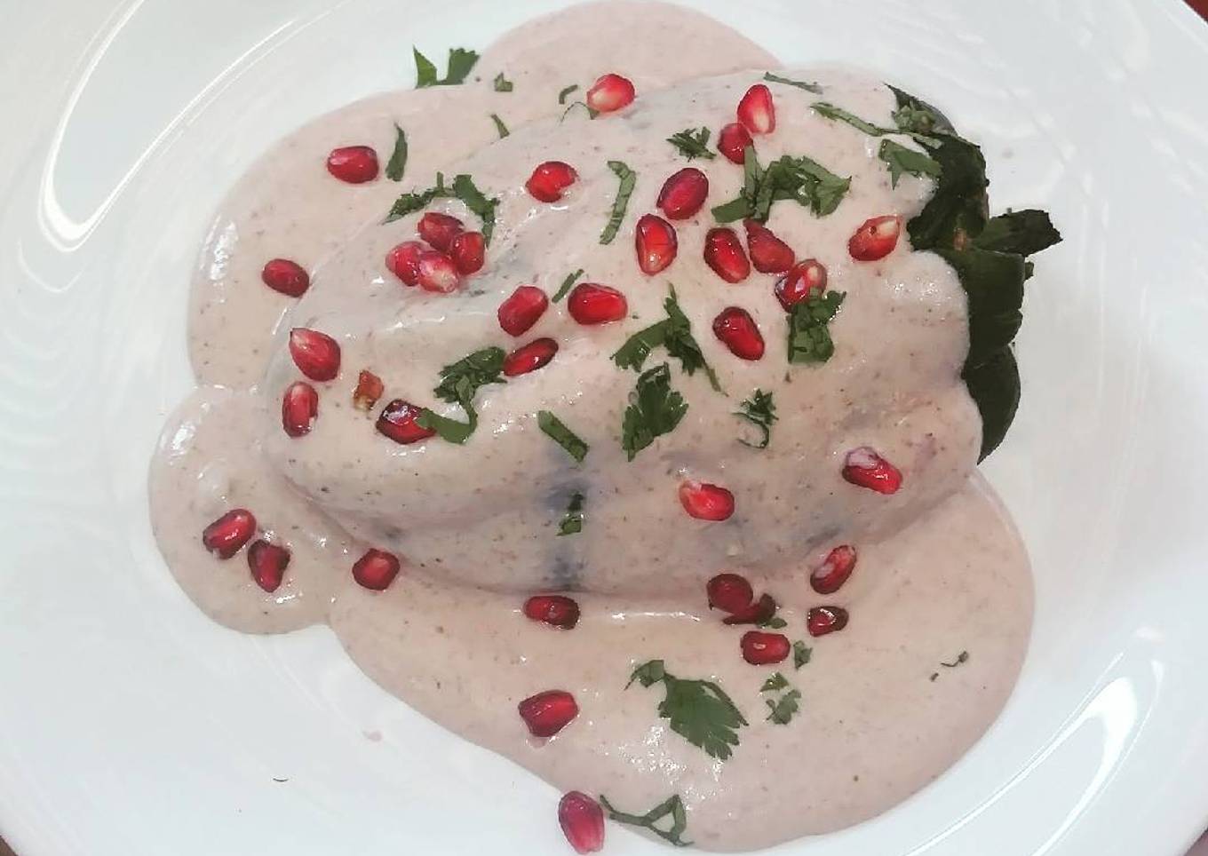 - Finalmente rellenar el Chile con la carne y bañarlos con la nogada y agregar granada