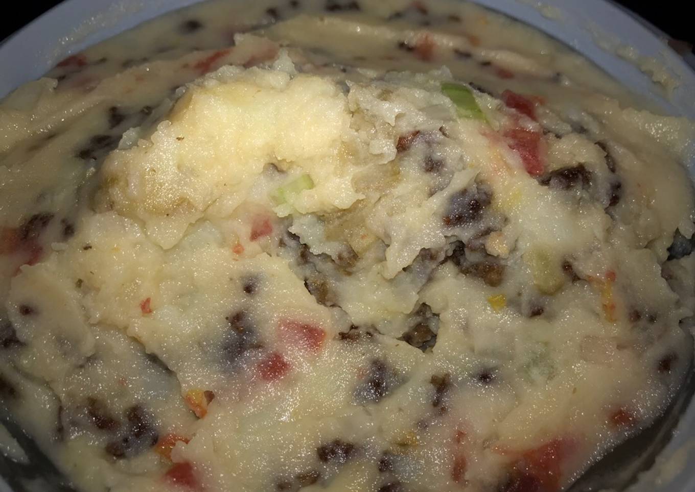 - REVOLVER CARNE Y PURÉ: se revuelven la carne y el puré y voilà, la botana está lista.