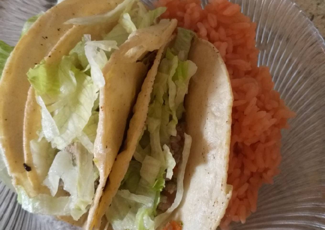 - Rellenar las tortillas con la carne preparada. Y colocarle lechuga. Colocar en un plato y acompañar con arroz o ensalada de lechuga. Lo que prefieras. Y listo