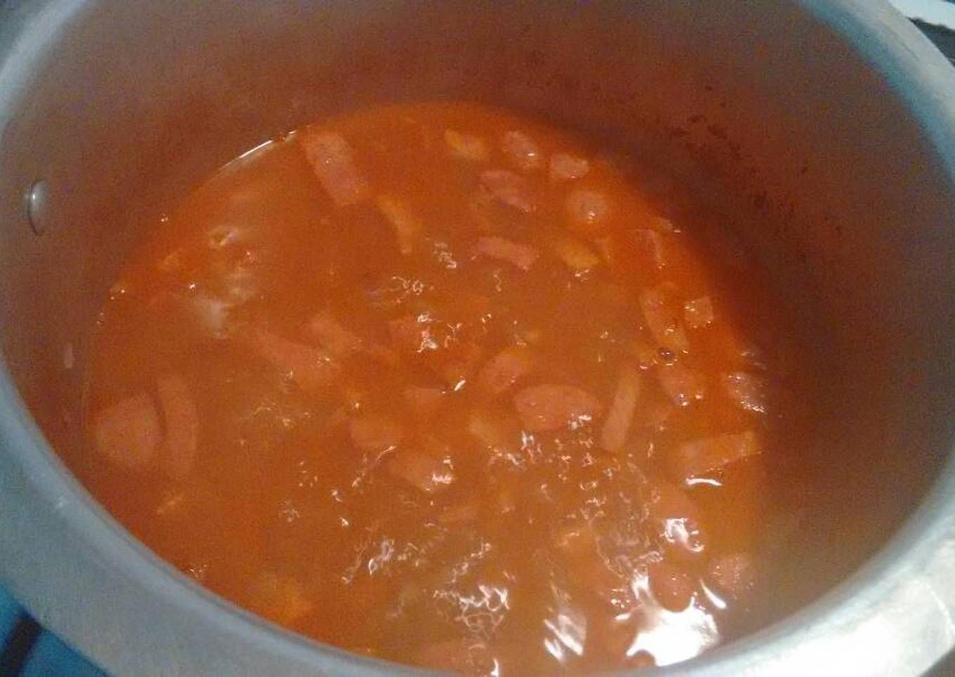 - Lleva a dorar, agrega las lentejas, agrega el pimentón y mezcla muy bien, ahora el caldo que hayas escogido y los tomates rallados, deja cocer no más de 10 minutos, que no se sobrecuezan, no queremos un puré.