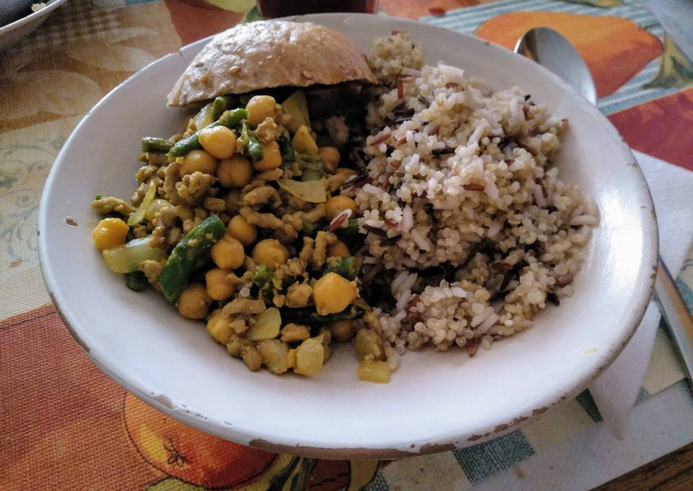 Lo acompañamos con un arroz (mezcla de 3 arroces) con quinoa cocidos, siguiendo la receta de nuestra amiga Paula. Delicioso, muy nutritivo y se prepara en poco tiempo!
