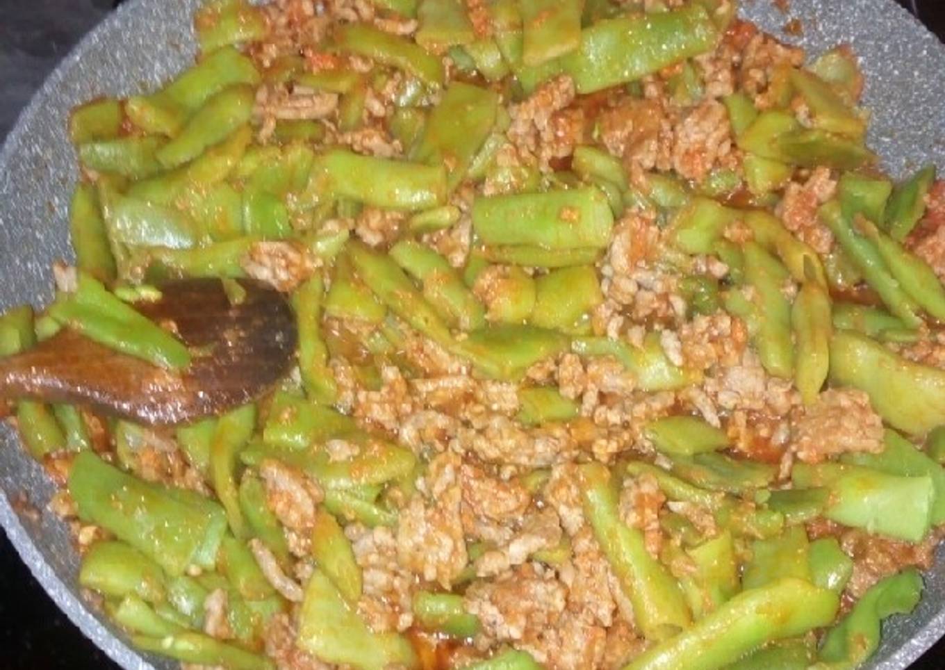 Steps to make to make Judías verdes con sobrasada y carne picada