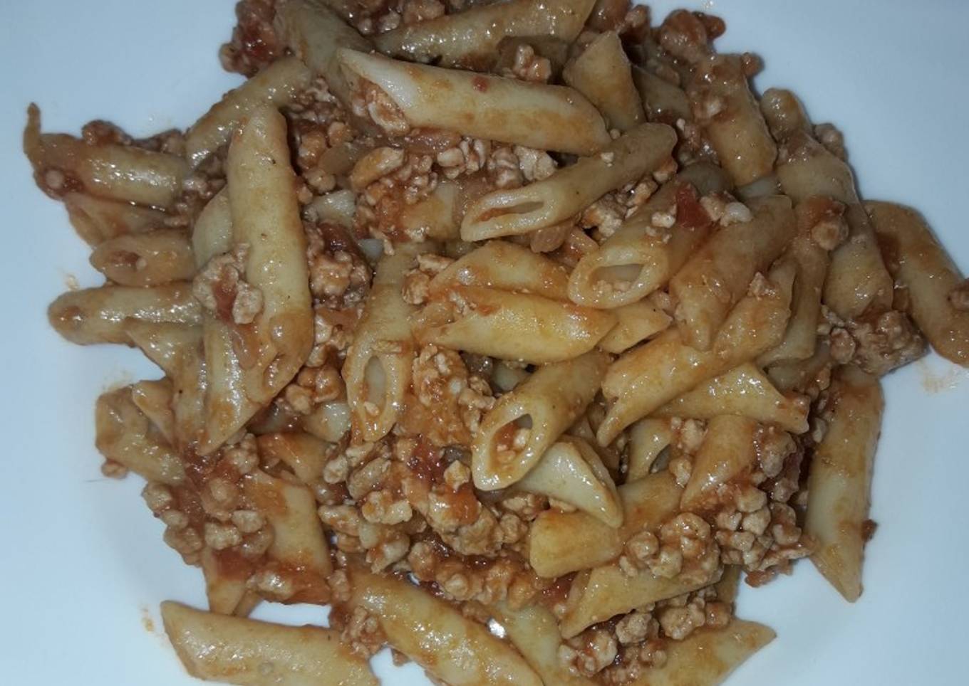 Macarrones con carne picada tomate y cebolla